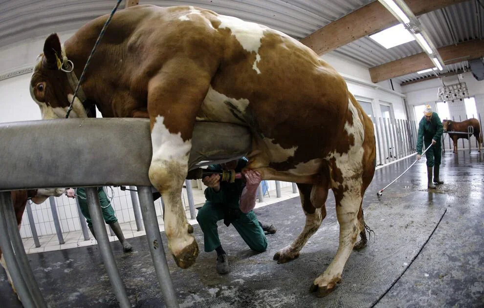 A bull being forced to ejaculate. Photo credit: Unknown.