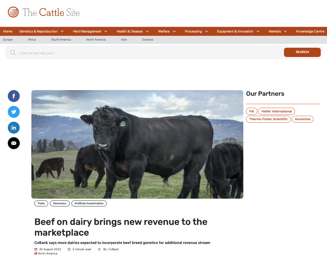 Screenshot from ‘The Cattle Site’ reads: Beef on dairy brings new revenue to the marketplace